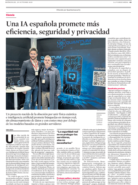 El proyecto, liderado por el Dr. Antonio López, físico cuántico, investigador y fundador de QuantumSecurity, plantea una revolución en el modo en que la IA opera: sin servidores, sin almacenamiento de datos y sin dependencia de centros de datos externos.